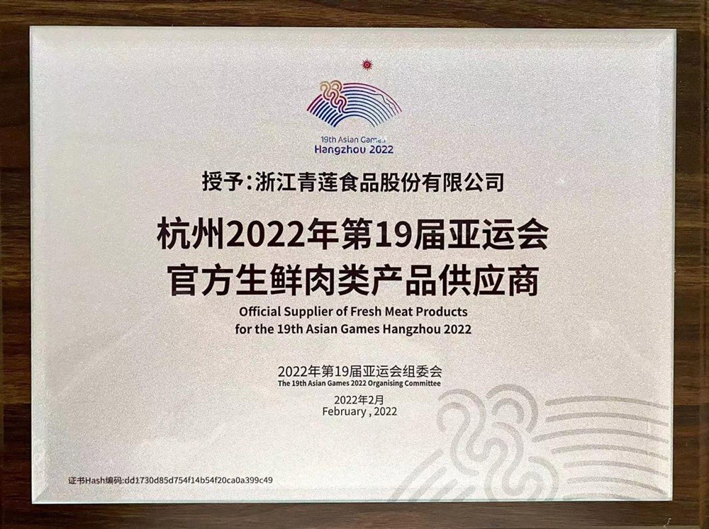 青蓮食品成為杭州2022年第19屆亞運會官方生鮮肉類產品供應商